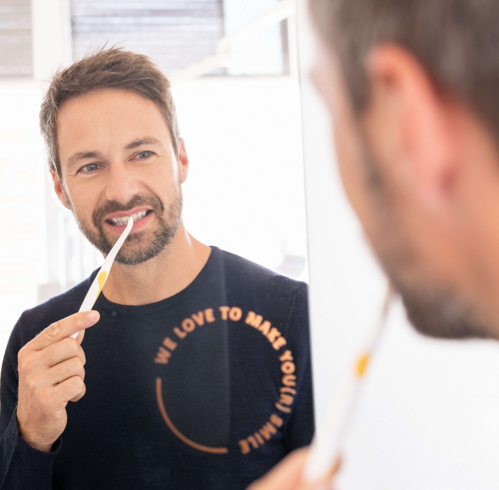 Damit Ihre neuen Zähne langfristig gesund bleiben, ist eine sorgfältige Pflege essenziell. Nach der All-on-4®-Behandlung erhalten Sie eine ausführliche Anleitung zur optimalen Reinigung und Pflege zu Hause: SOLO-Zahneinigung-Konzept.