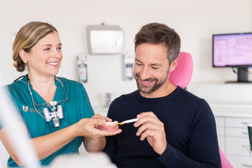 Neben der täglichen Mundhygiene empfehlen wir zusätzlich zwei- bis dreimal jährlich eine professionelle Implantat-Reinigung in unserer Praxis.