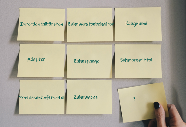 - Prothesenhaftmittel und Zahnwachs für kleine Notfälle, die in den meisten Apotheken erhältlich sind.