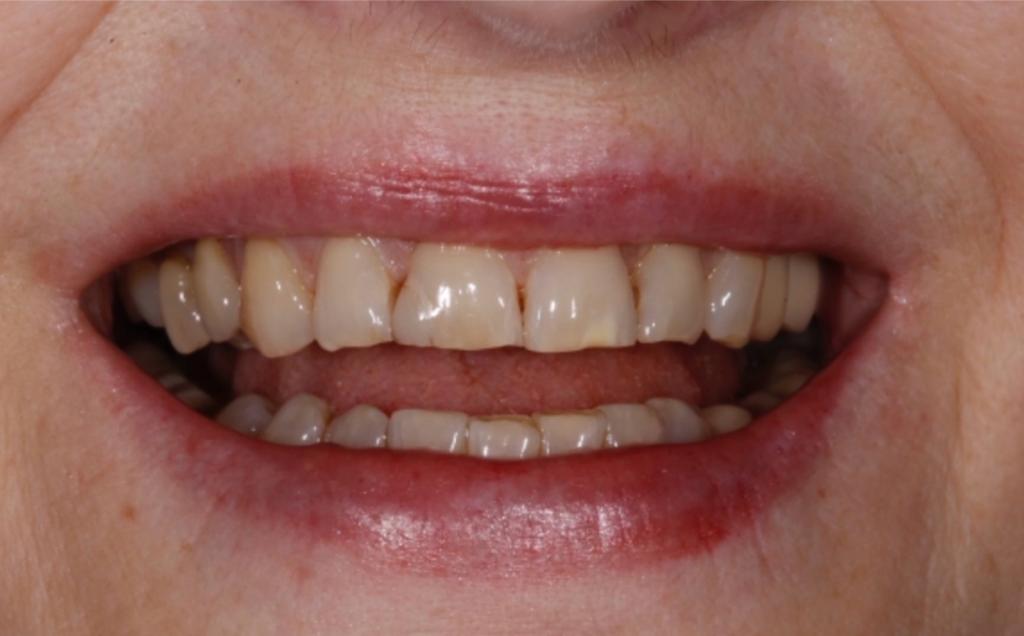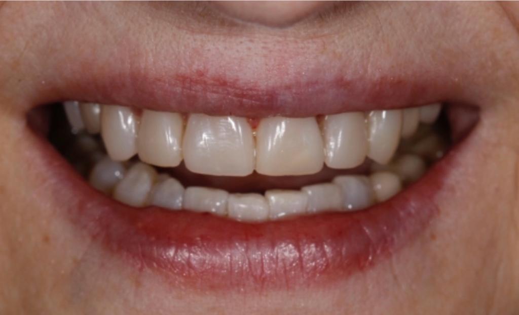 Bei unserer Patientin bei den Zahnärzten am Phönixsee in Dortmund wurden die Zähne vorne leicht aufgehellt, um den farblichen Übergang zu den Zahnkronen hinten nahtlos zu gestalten. Die vorderen Zähne 13-23 wurden mit Veneers korrigiert.
